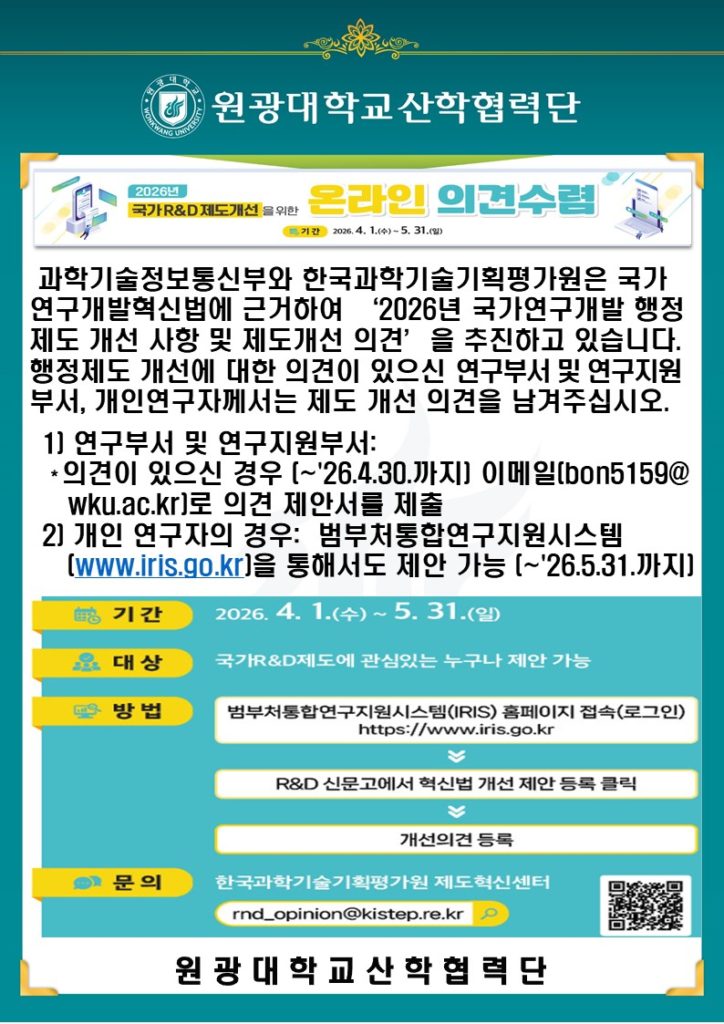 - 2026년 교육부 이공분야 학술연구지원사업 연구책임자 신청기간 안내 2026/03/30