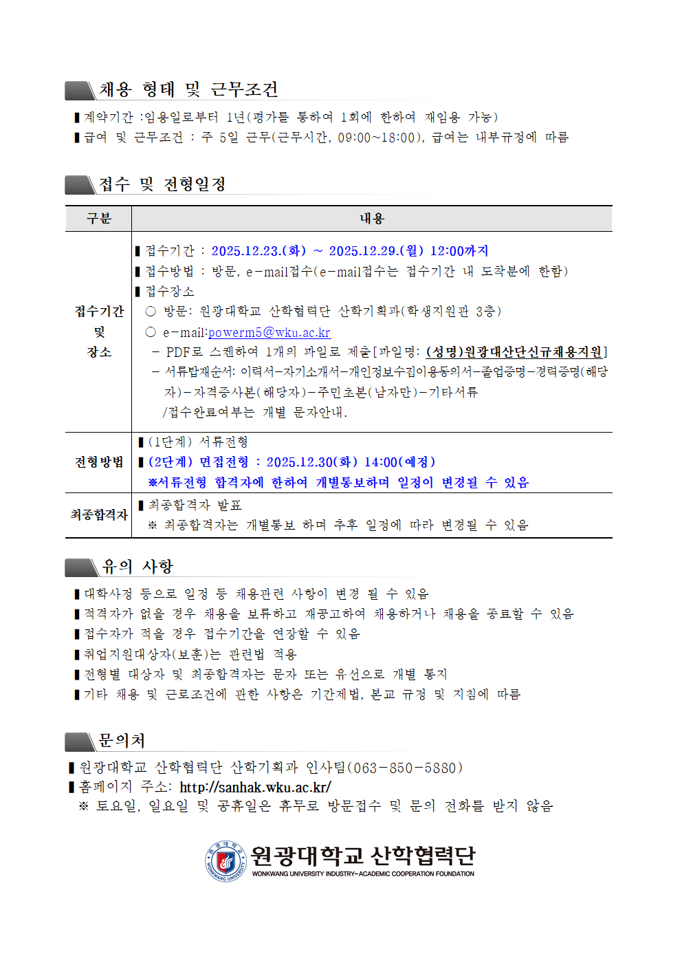(산학협력단)직원채용공고(접수 12/23~12/29 12:00)